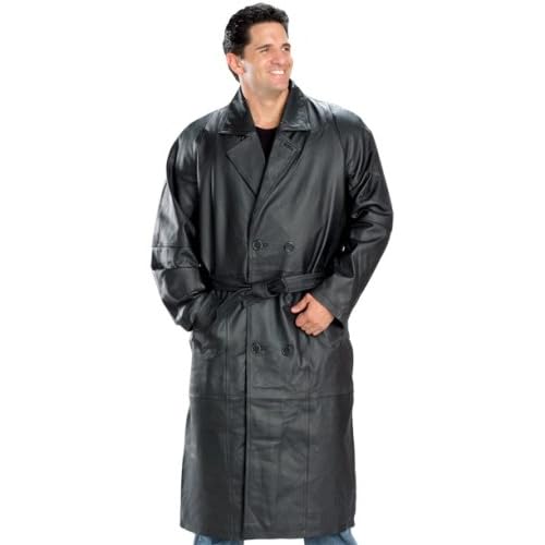 Men's Classic Double Breasted Leather Trench Coat Jacket